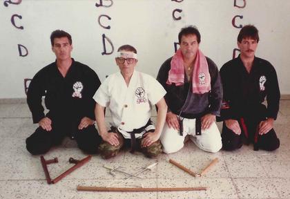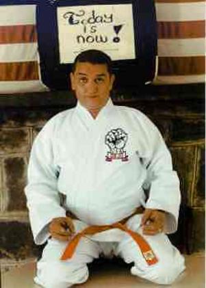 Grand Master Guinee told the webmaster that it practically took a miracle getting Maestro into a white uniform and red belt, in order to pose for the above photo's .
